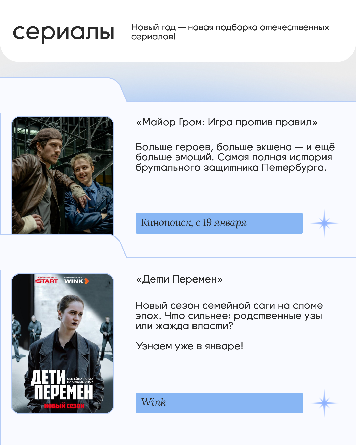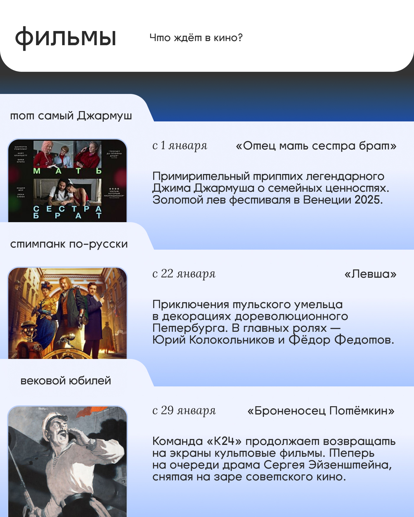 Фильмы, сериалы и дополнительная мотивация к записи на пешеходные экскурсии — всё ищи в карточках!